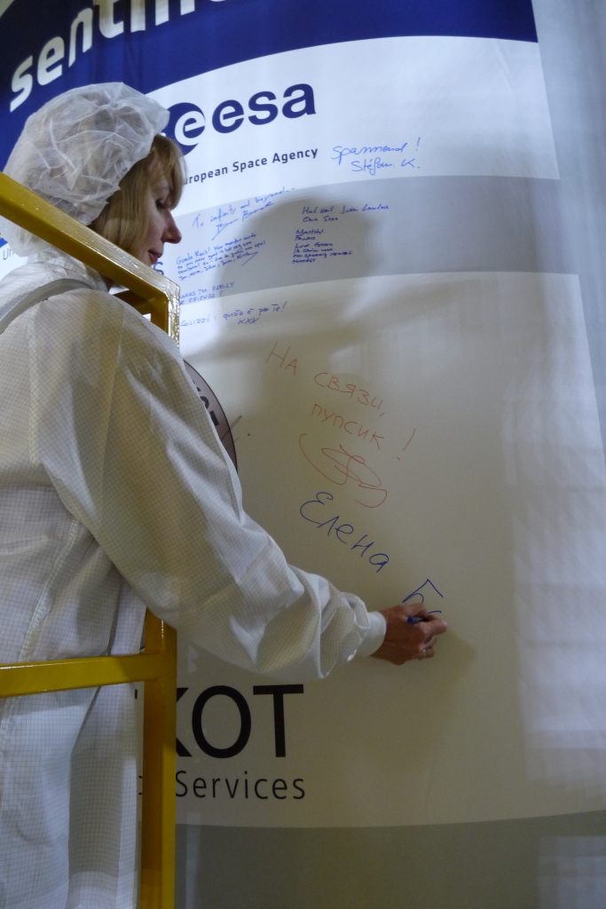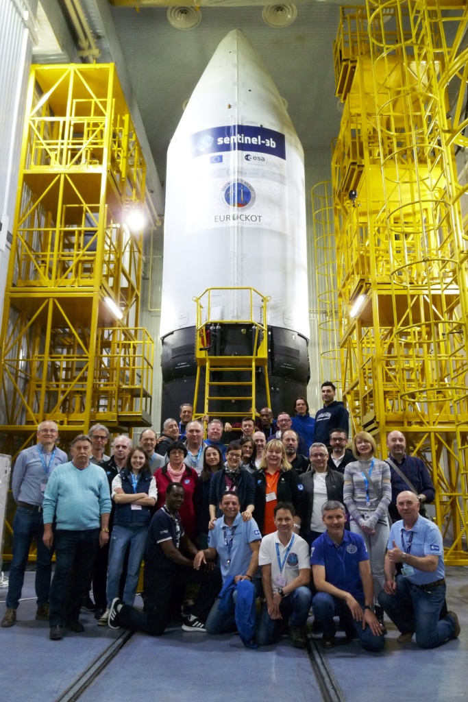 "We all bid farewell to 'our baby' as it was encapsulated in the Rockot fairing and we are all proud to see that it is now ready and waiting in the launch tower for the big day.