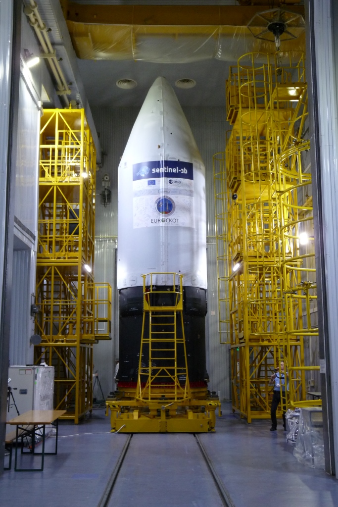 The Sentinel-3B satellite has been at the cosmodrome since mid-March being readied for its ride into space on 25 April at 17:57 GMT (19:57 CEST).