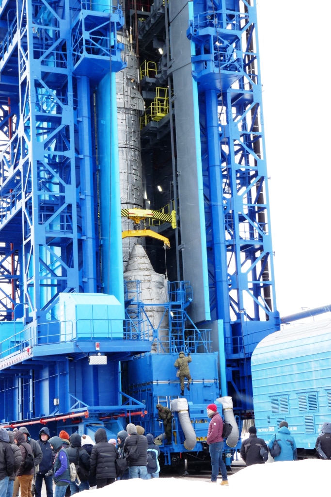 The movement of the space head (Upper Composite) to the general hall is the main event on our plan today. Just before moving all parties made their last pictures and said goodbye. The first big group of people is leaving Plesetsk today.