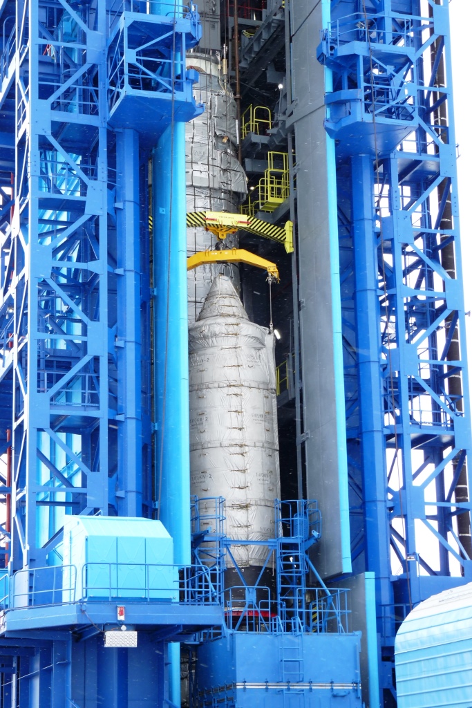 We could see the upper composite being lifted up to level 7 of the tower wh ere it was prepared to be mated with the lower stage of the rocket.