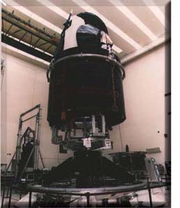 "Built by Hughes Space & Communications Group for INTELSAT, it measured 3.6 m in diameter and 5.3 m tall when stowed. It stretched to 11.7 m with solar drum extended."