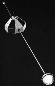 А я и не говорил, что был. Просто я подумал, что отрабатывать гравитационную систему стабилизации лучше на таком же по форме спутнике. Но необходимость совместимости с пантронташем всё гораздо лучше объясняет.