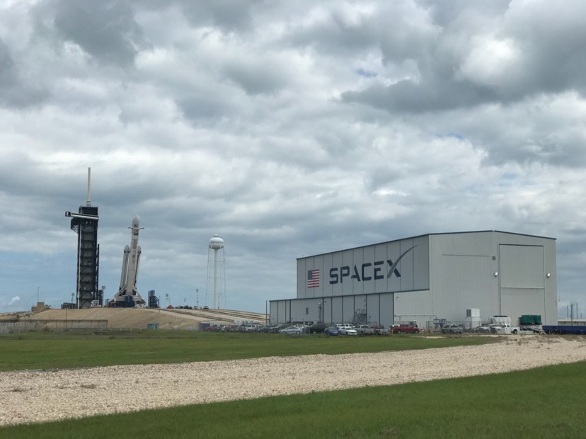Falcon Heavy being prepared this morning at 39A for launch this evening. These clouds should clear up by then. #FalconHeavy @Teslarati