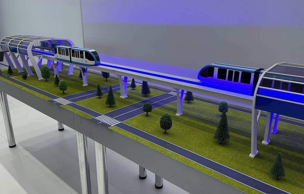 Как сообщает корреспондент ТАСС, на макете видна инфраструктура объекта, два поезда, которые передвигаются навстречу друг другу. Проект пока планируется развивать как общественный транспорт внутри городов.