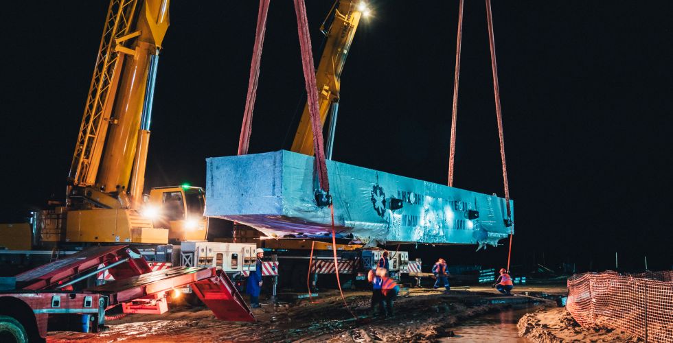 Специалисты Космического центра «Восточный» (филиал Центра эксплуатации объектов наземной космической инфраструктуры, входит в состав Госкорпорации «Роскосмос») при помощи специальной техники начали перемещение составных частей силовой рамы со склада филиала ЦЭНКИ непосредственно к месту монтажа: на площадку, где идёт строительство стартового комплекса.