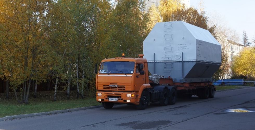Восемь частей весом почти 40 тонн каждая перевезены со склада Промышленно-эксплуатационной базы космодрома к месту монтажа — на площадку, где в настоящее время полным ходом идёт строительство стартового комплекса для ракет-носителей семейства «Ангара».