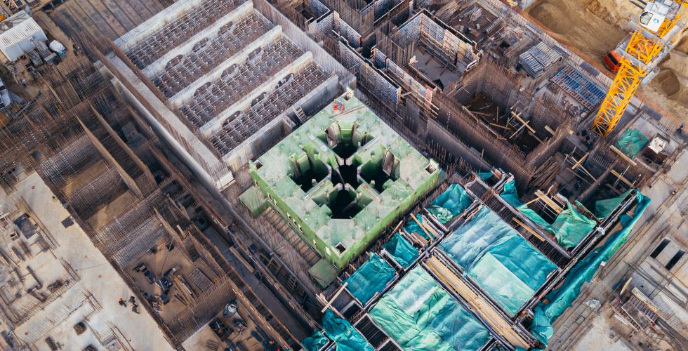 Рама состоит из 16 частей: четырёх угловых (по 43 тонны каждая), восьми средних по 23 тонны и четырёх пилонов (вес каждого составляет 52 тонны). В настоящий момент она установлена в проектное положение.