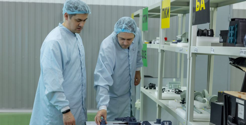Юрий Борисов осмотрел поточную линию производства спутников проекта «Сфера»