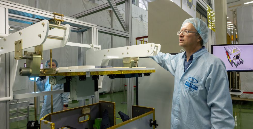 Главе Роскосмоса продемонстрировали создаваемую на предприятии поточную линию сборки и испытания спутников системы передачи данных «Марафон-IoT», входящей в федеральный проект «Сфера».