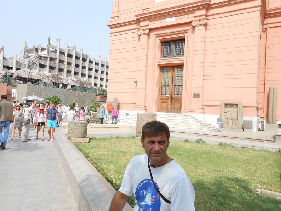 Это я у входа в музей истории в Каире. А за забором - полностью сожжёная многоэтажка во время революции и захвата музея