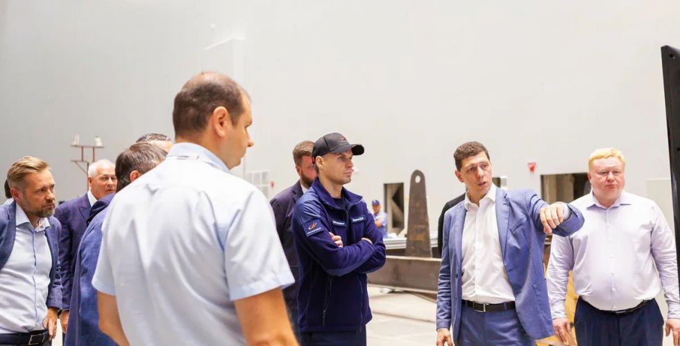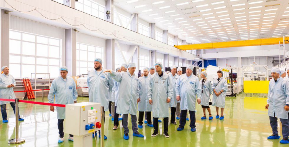Дмитрий Баканов также побывал в монтажно-испытательном корпусе, где собирают и испытывают космические аппараты. Треть корпуса занимает безэховая камера для высокочастотных проверок излучающих систем спутников.