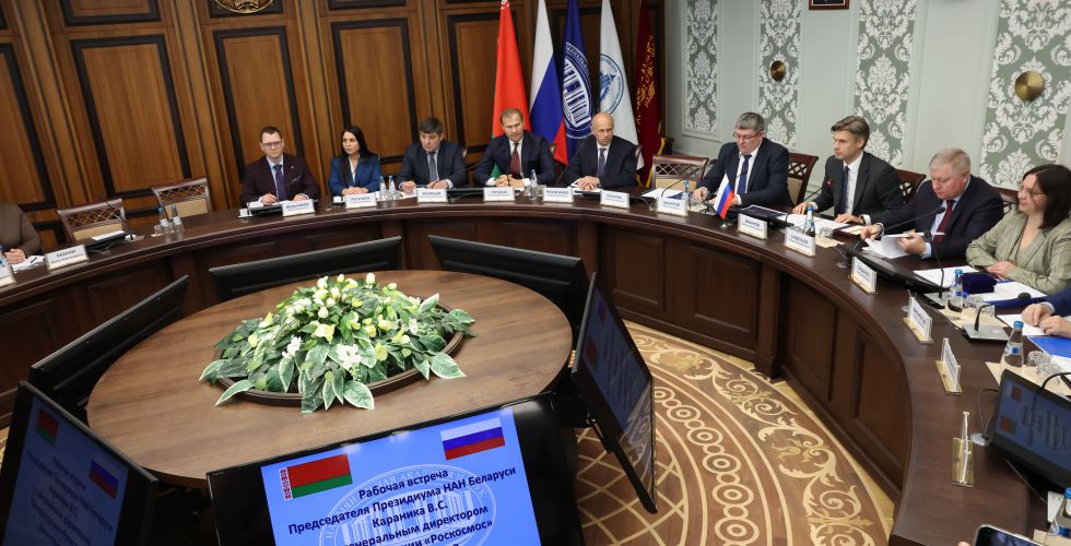 Глава Госкорпорации в среду провел переговоры с председателем Президиума Национальной академии наук (НАН) Беларуси Владимиром Караником, а затем прошла встреча делегаций Роскосмоса и НАН в широком составе.