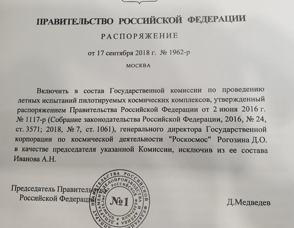 В пятницу 21 сентября провожу первое заседание Государственной комиссии. Вместе с конструкторами и Центром подготовки космонавтов рассмотрим готовность к пуску 11 октября пилотируемого корабля "Союз МС"