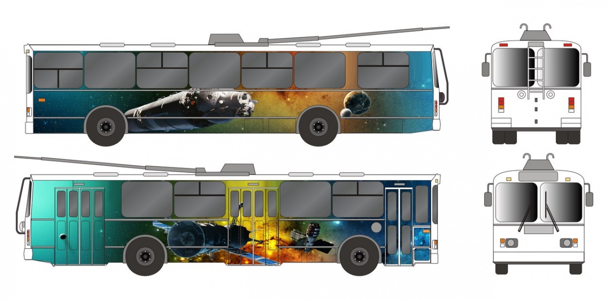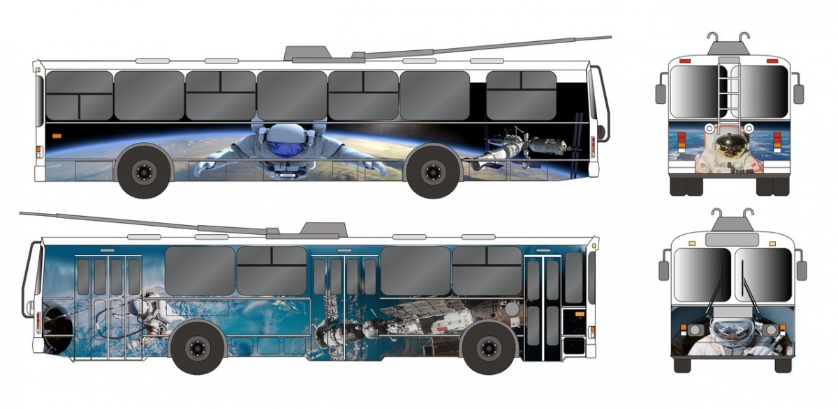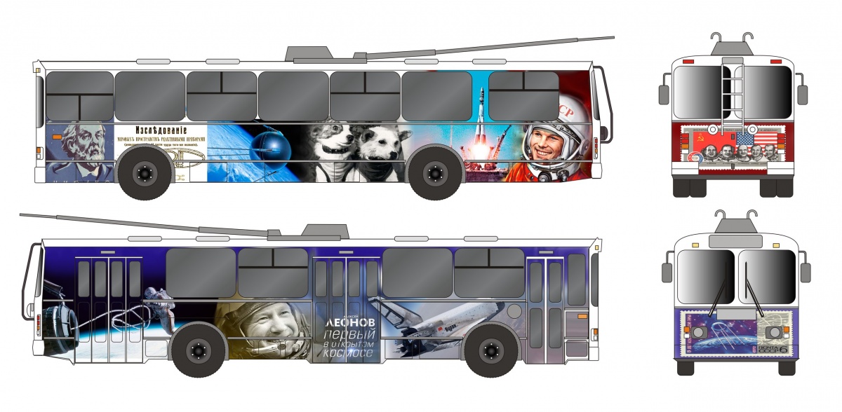 Как рассказал НГС.ОМСК Андрей Северский, возродить космический троллейбус (или космотрол) предложил председатель общественного движения «Омичи за трамвай» Юрий Романовский. Андрей Северский нарисовал семь эскизов оформления троллейбусов, которые должны рассмотреть в администрации Омска. На одном из вариантов изображены Константин Циолковский, Белка и Стрелка, Юрий Гагарин и Алексей Леонов.