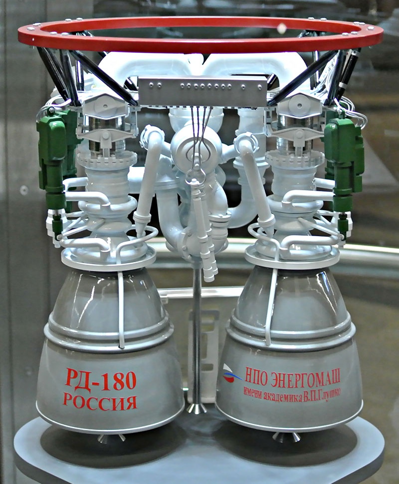 РД-180 -- Российский двухкомпонентный жидкостный ракетный двигатель. Справка