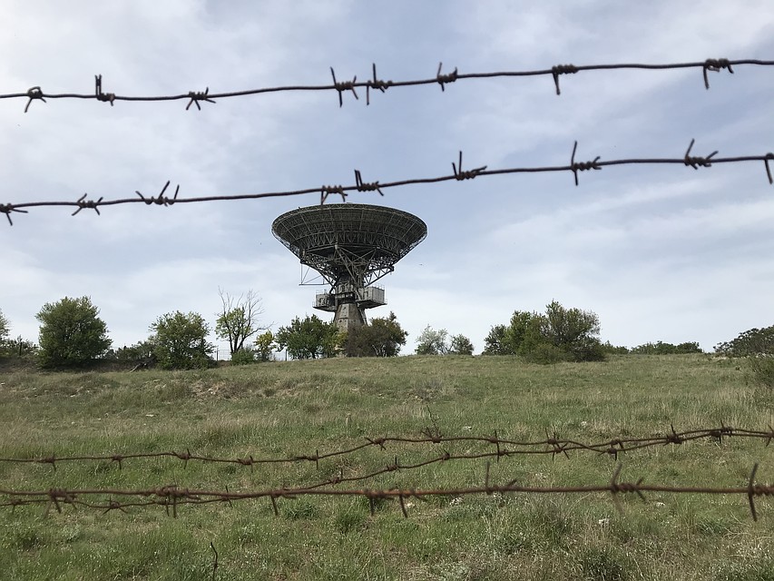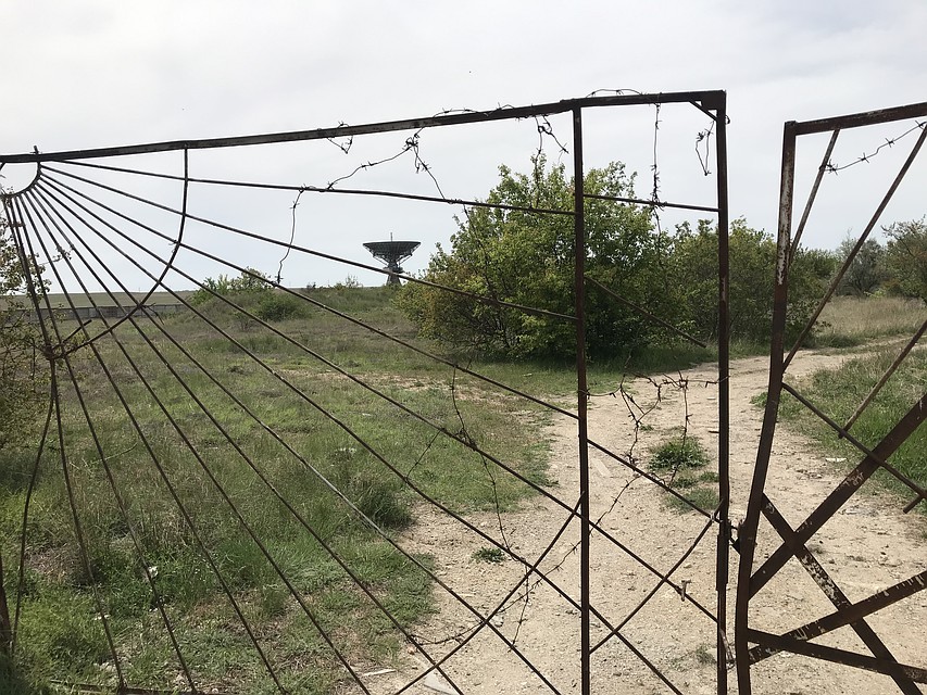 Моя встреча с радиотелескопом оказалась короткой. На различных ресурсах о заброшенных объектах Крыма было указано, что добраться до телескопа можно, подтверждали это и фотографии. Но только потом я поняла, что сделаны они были из-за забора. К самому устройству мало кто пробирался. И понятно почему.