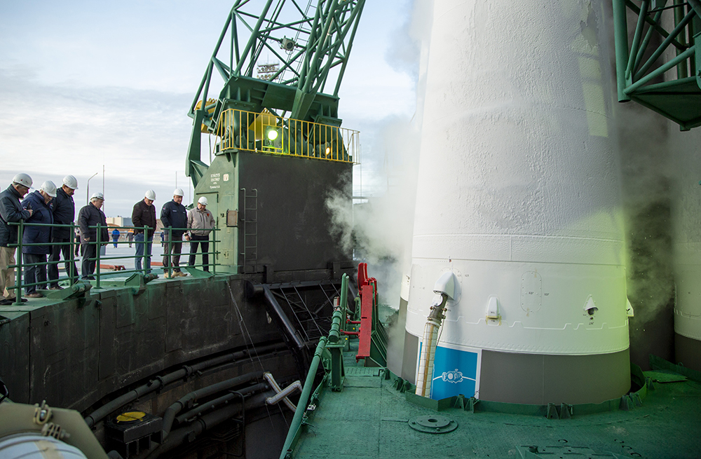 Обработка корпуса «Ракеты Победы» на стартовой площадке космодрома Байконур перед пуском к МКС. Фото: пресс-служба ГК «Роскосмос»
