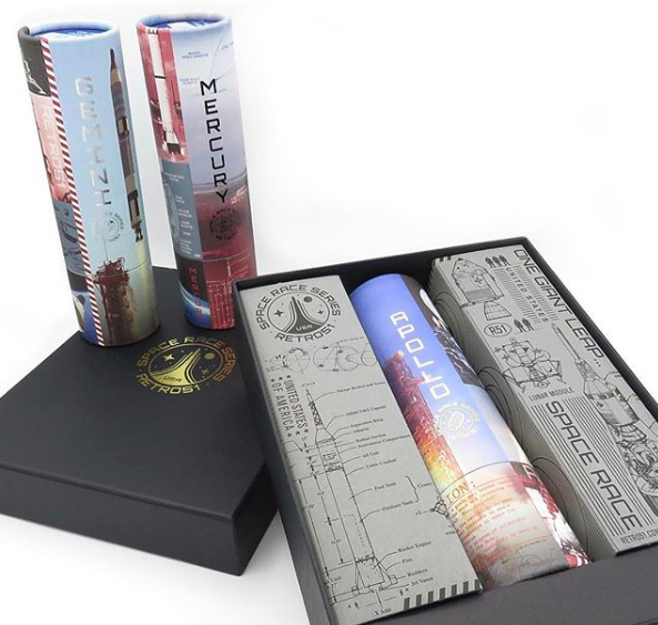 К тому же, дополнительное удовольствие от покупки добавляется тем, что каждая из ручек продается в специальном издании-коробке, с некоторыми дополнительными графическими материалами и аксессуарами. А при покупке всех трех типов ручек от Retro 51, пользователю они придут запакованными в подарочную упаковку, которая отличается еще более интересным дизайном. Ручки Retro 51 Space Race Series выпускаются в ограниченном количестве - а именно в количестве 1958 штук каждой.