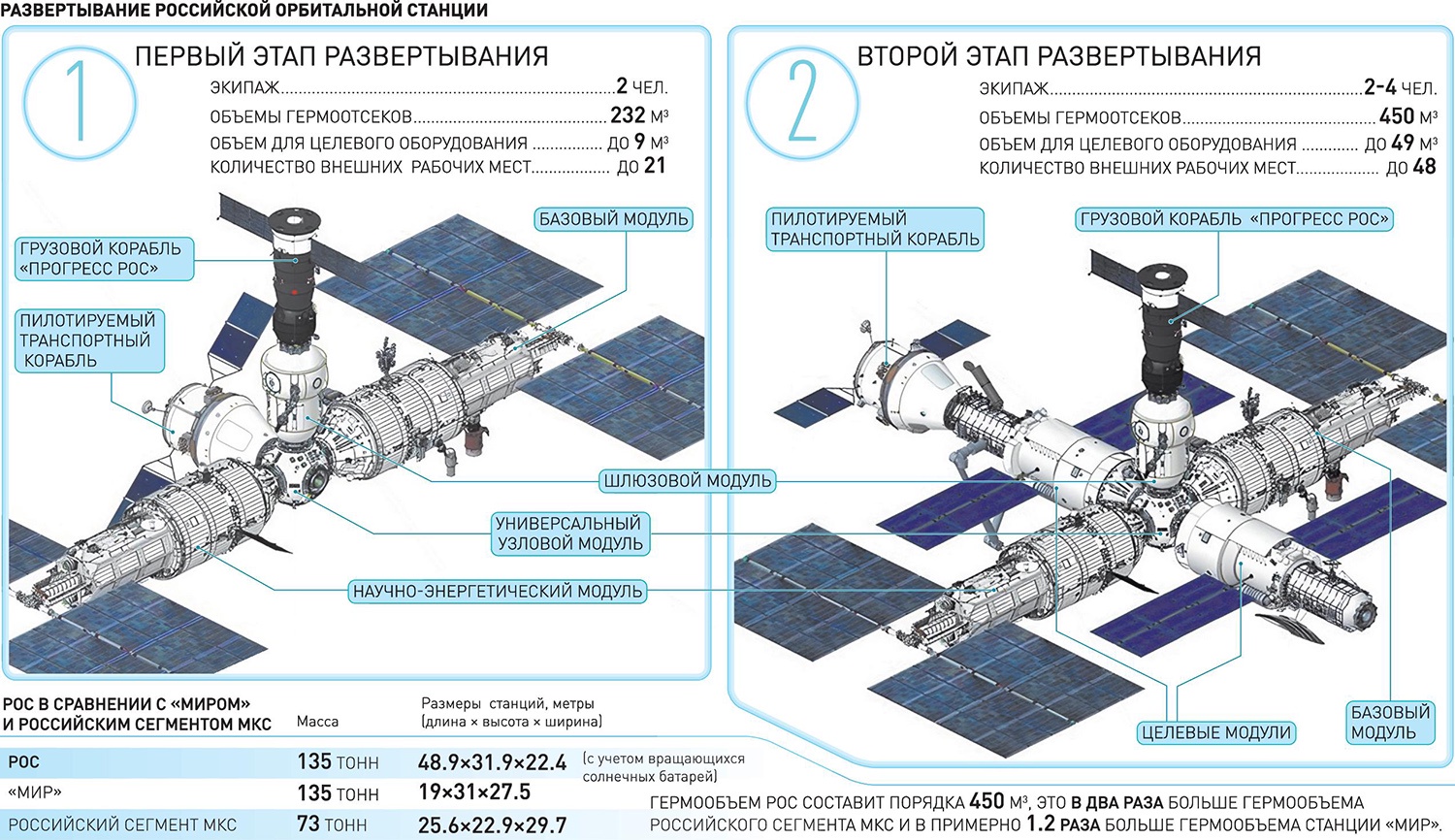 — Проектом предусматривается на первом этапе развертывания РОС одновременное функционирование российского сегмента МКС и новой станции. Соответственно и экипажи обеих станций какое-то время будут работать одновременно, аналогичная ситуация была при развертывании МКС и завершении эксплуатации станции «МИР». Но, повторю, речи о перелете с МКС на РОС и обратно не идет.