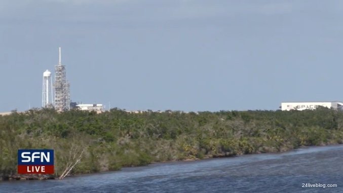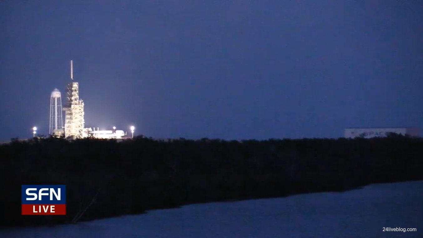 The upgraded Falcon 9 rocket appears to have completed its nearly two-hour journey from its hangar to the launch pad.