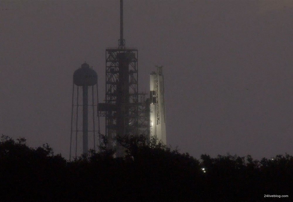 Darkness is falling at the Kennedy Space Center as SpaceX prepares to lift the first Falcon 9 Block 5 rocket into position on the launch pad for a crucial engine test tomorrow. The 3.5 second firing of the nine Merlin first stage engines is due to take place during an eight hour window that opens at noon EDT (1600 GMT).