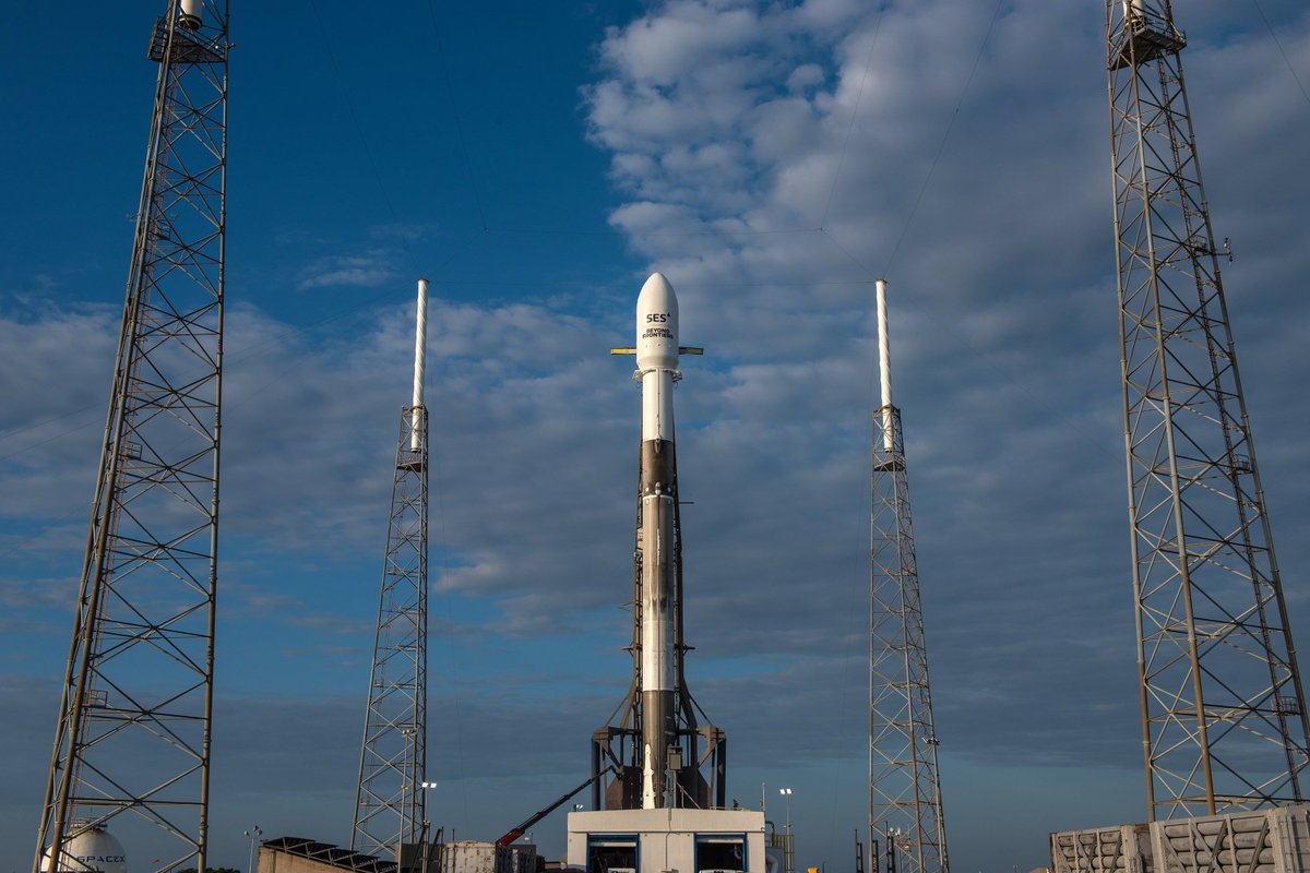 #Falcon9 awaits launch tonight from SLC-40. Launch window is 00:29-04:29 EDT (0429-0829 UTC). This is a flight-proven Block 4 (X-37B launch) & Block 5 2nd stage -- the SECOND time this 4/5 configuration has flown. There will be NO first stage recovery tonight. #SpaceX #SES12