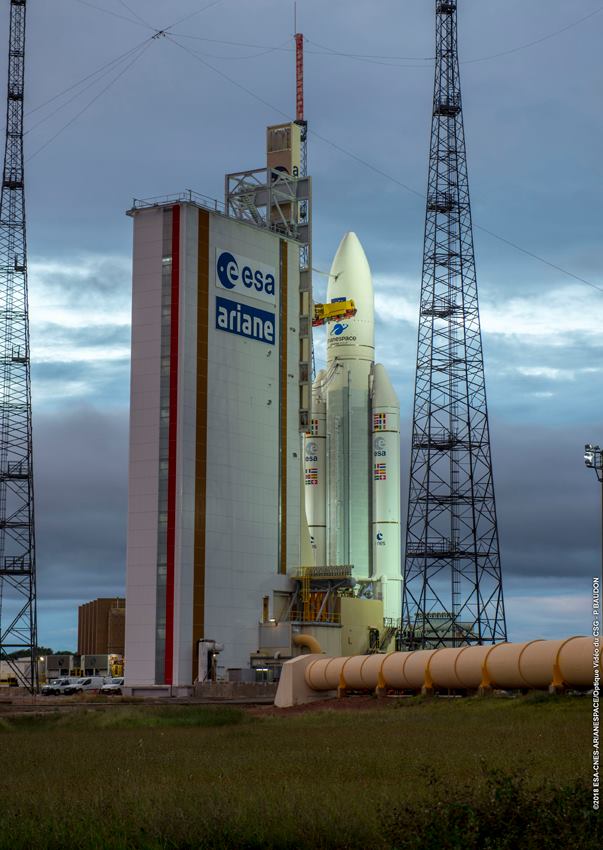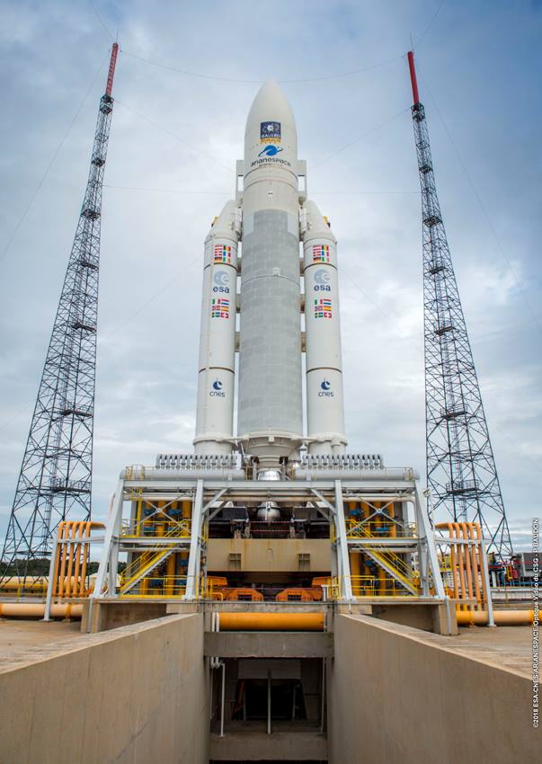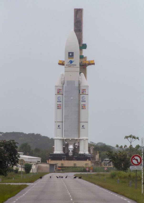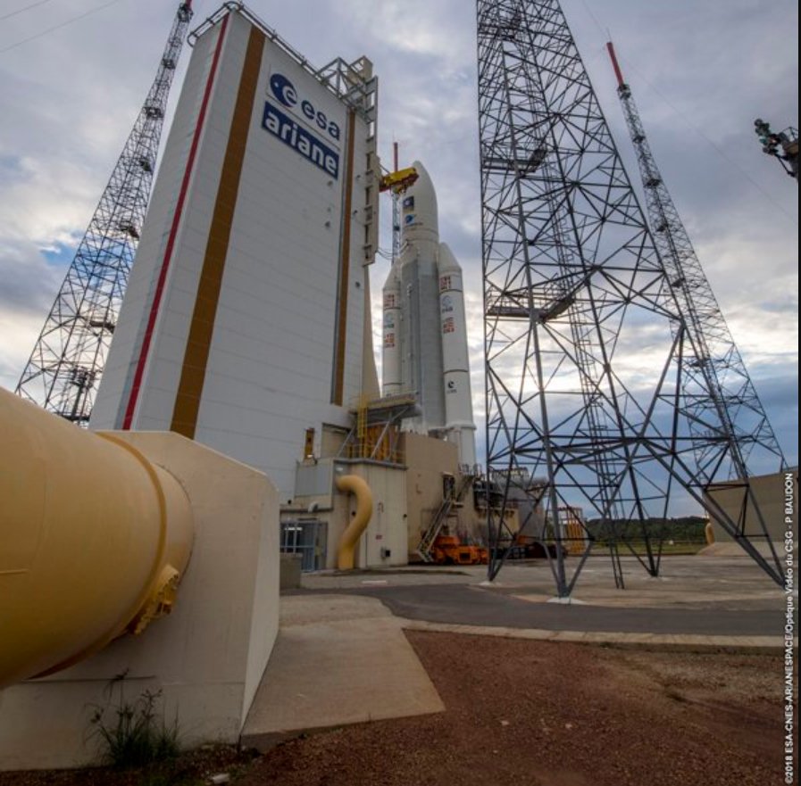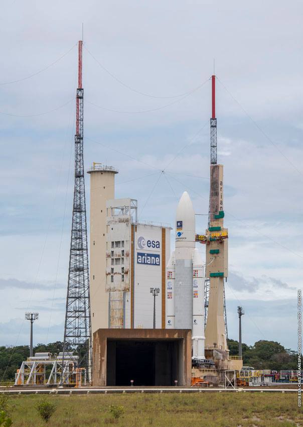 https://spaceflightnow.com/2018/07/24/ariane-5-rocket-galileo-satellites-on-launch-pad-in-french-guiana/