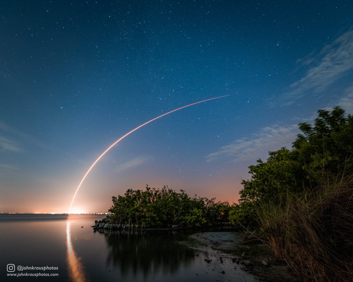#SpaceX's #Falcon9 rocket streaks into the nighttime Space Coast sky at 1:50am this morning with the #Telstar19V satellite.