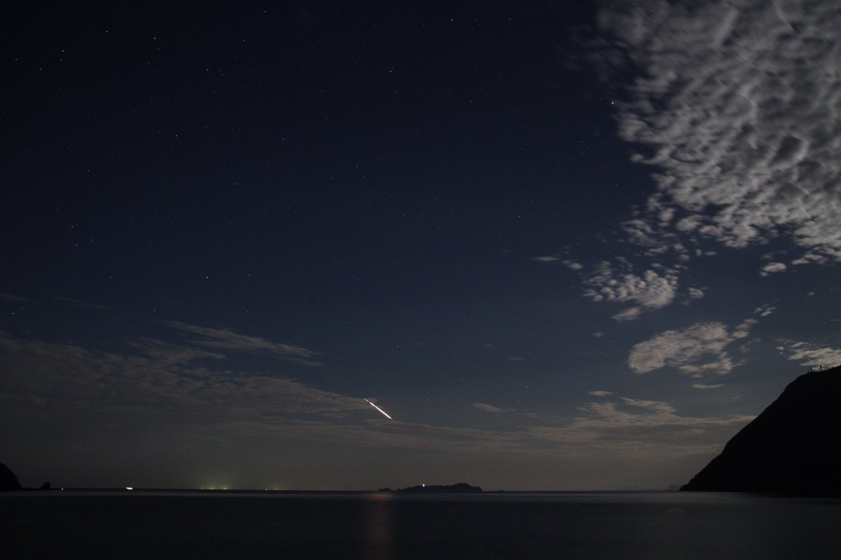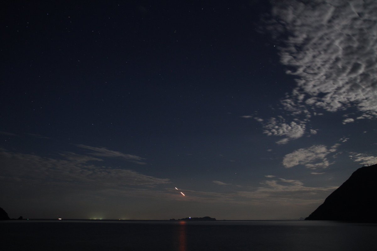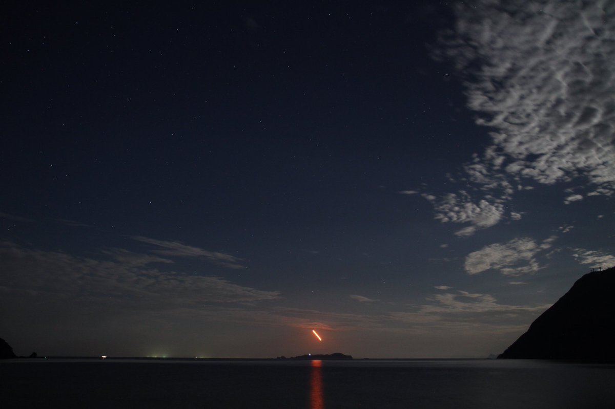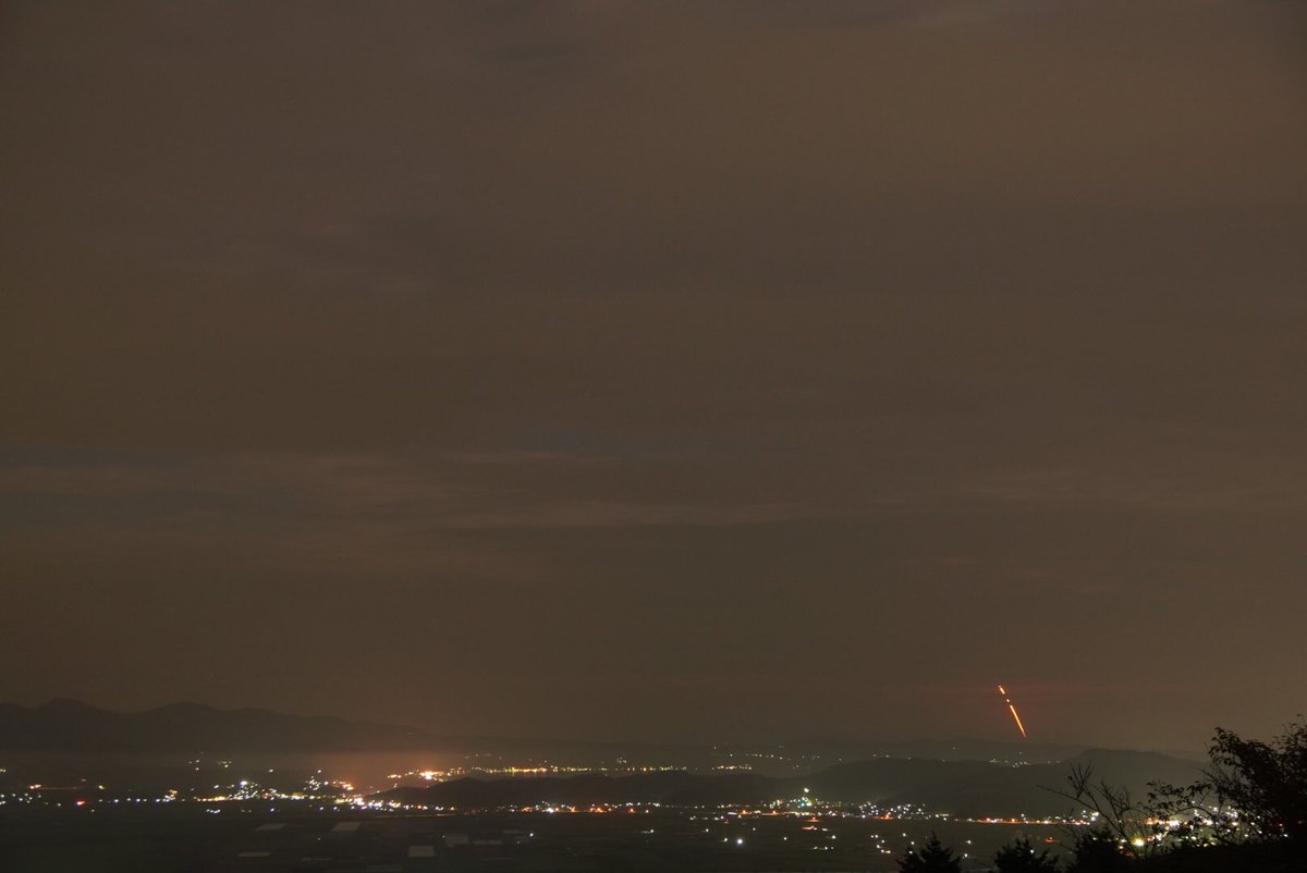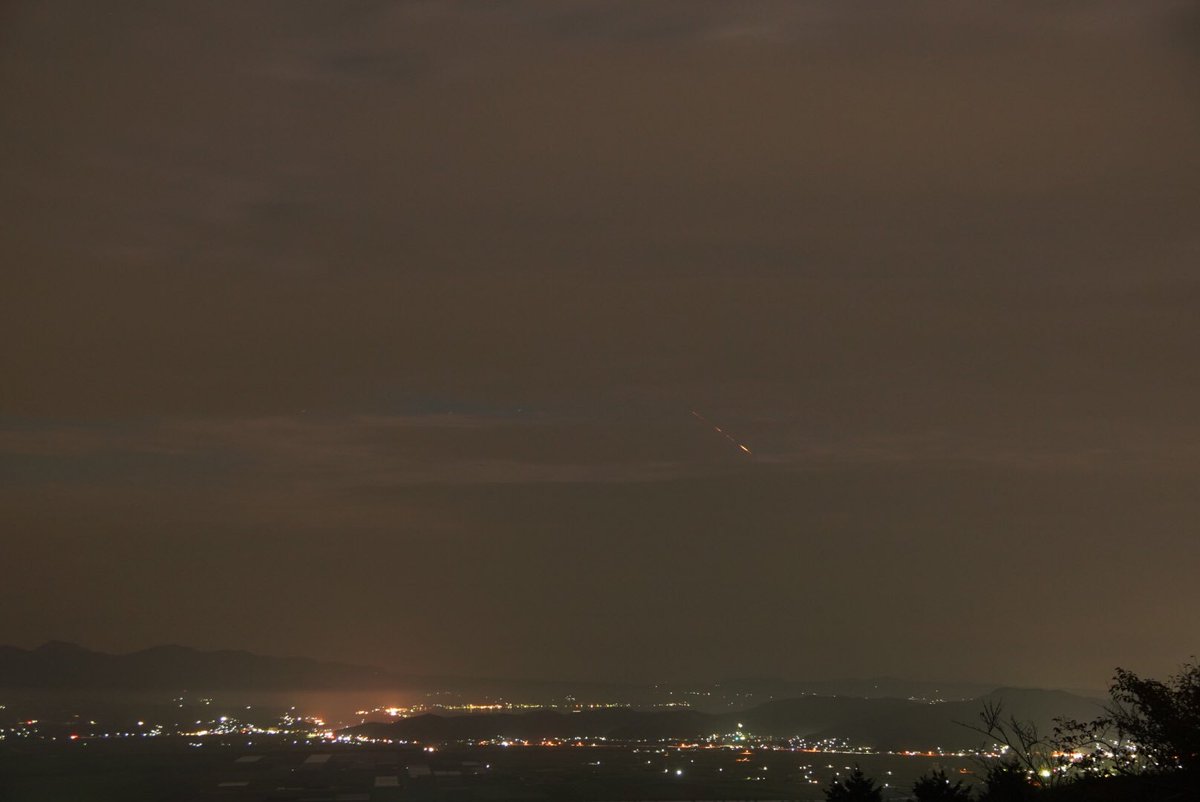 長崎光学観測班より長崎県諫早市白木峰高原より、H-ⅡBロケット6号機の光跡 曇り空を切り裂く、SRB-A4本+LE-7A2基掛けはやっぱり明るいな〜 #H2BF7 #HTV7