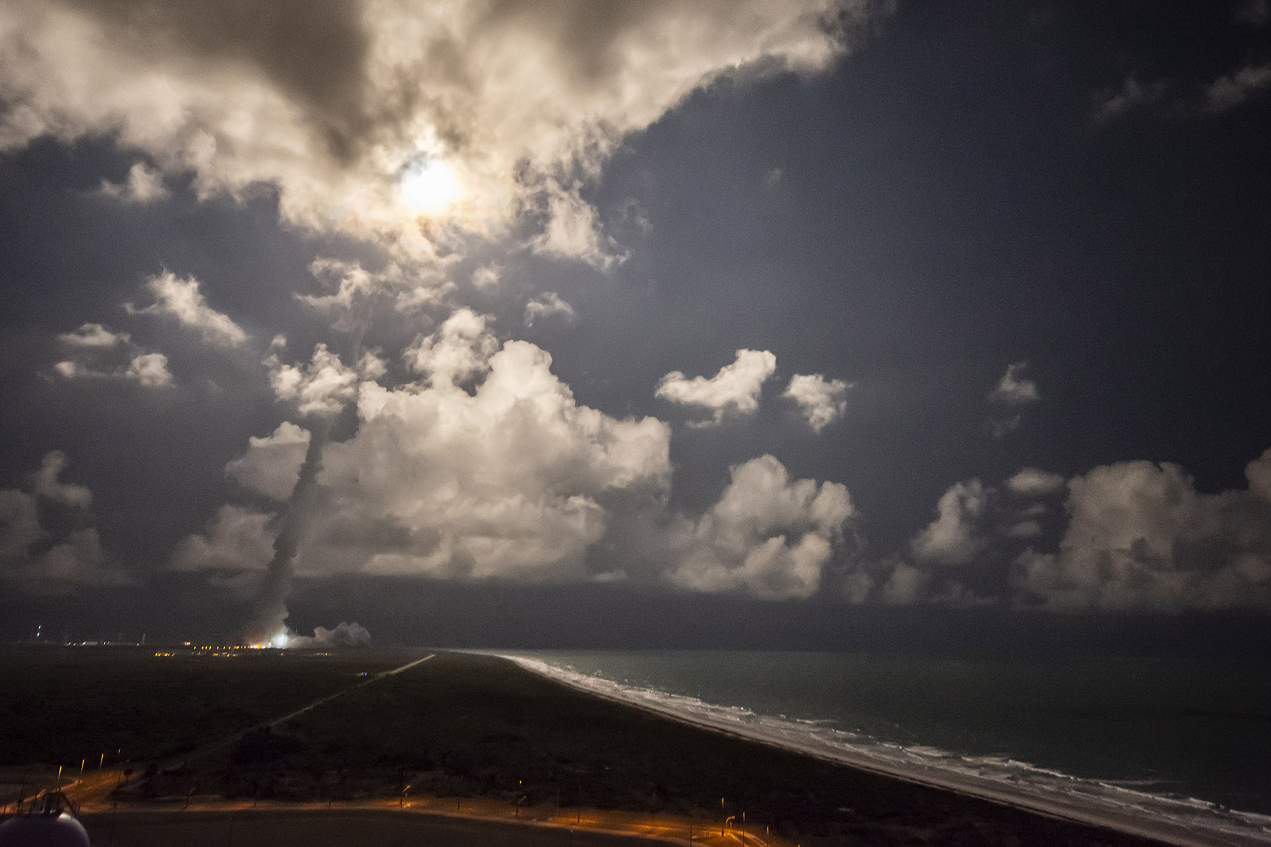This view of today's #AtlasV launch was taken from the nearby Space Launch Complex 37, the Delta IV rocket's East Coast home at Cape Canaveral.