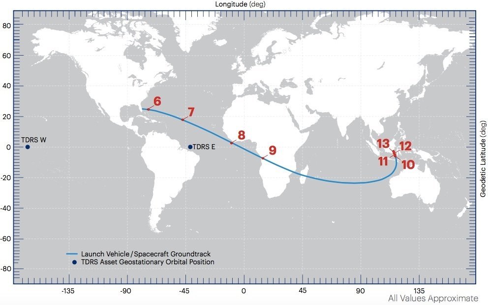 "Interesting trajectory tonight. All our orbits are customized. This is a GTO, but we will coast for several hours out to apogee and then do a major lift of the perigee. This will leave the spacecraft with only a small amount of remaining energy to add in order to circularize," Bruno said.