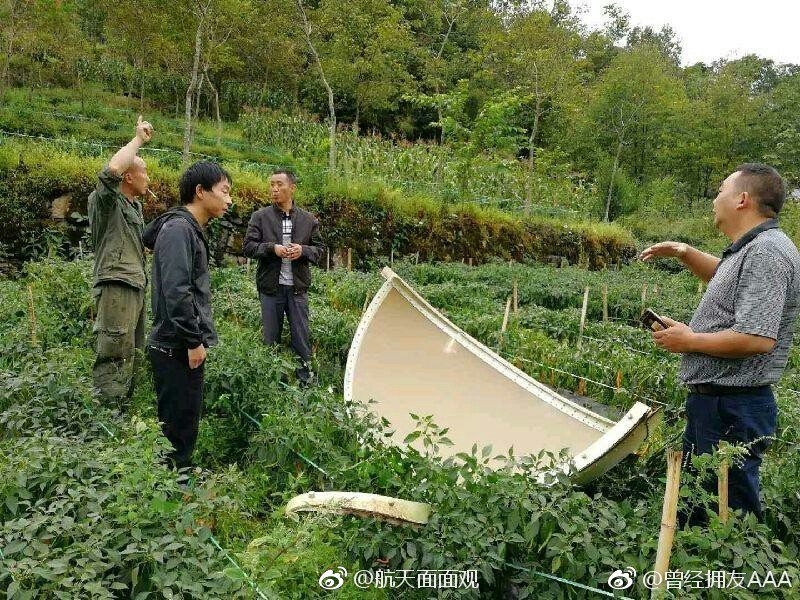 The payload fairing for China's Shenzhou-11 crewed space mission lands in an uninhabited area belonging to Yulin city in Shaanxi Province
