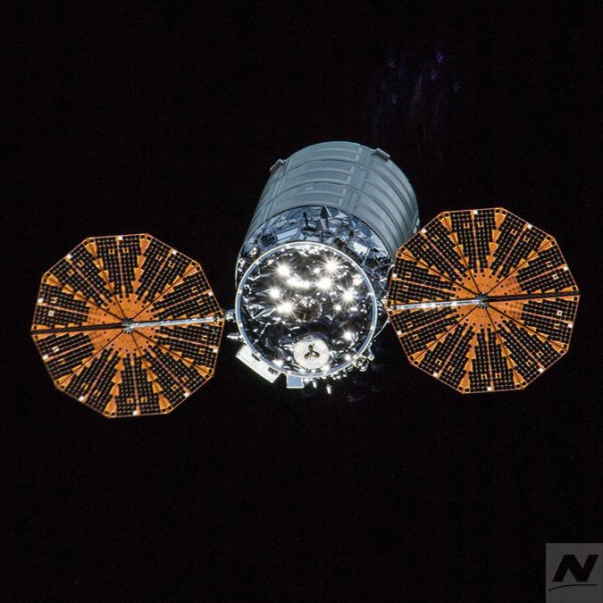 File photo of a Cygnus spacecraft with its solar arrays deployed. This Cygnus spacecraft with its cymbal-like UltraFlex solar arrays deployed was pictured departing the International Space Station Dec. 5, 2017, during Expedition 53. Credit: NASA