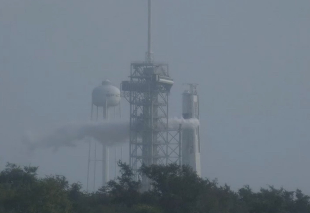 A big puff of venting appeared moments ago, suggesting the static fire could be timed for around 9 a.m. EST (1400 GMT).
