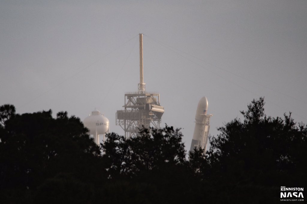The Falcon 9 is now in position on the launch pad under gloomy skies at the Kennedy Space Center. Check our Mission Status Center for countdown updates throughout the day: https://spaceflightnow.com/2018/11/15/falcon-9-eshail-2-mission-status-center/ ...