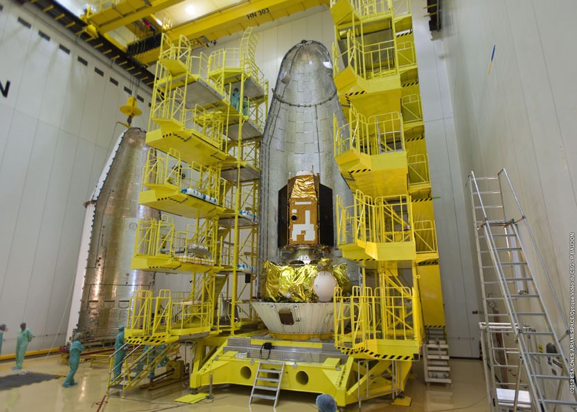 The launch readiness review followed final integration activities for Soyuz, during which the vehicle was fitted with its "upper composite," consisting of the Fregat upper stage and CSO-1 passenger encapsulated by the launcher's ogive-shaped payload fairing. This occurred inside the protective mobile gantry on the Soyuz ELS launch complex.