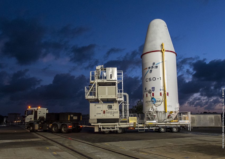 For its 11th and final launch of the year – and the third with the Soyuz medium launcher — Arianespace will send the CSO-1 Earth observation satellite, intended for defense and security applications, into Sun-synchronous orbit for the French CNES (Centre National d'Etudes Spatiales) space agency and the DGA (Direction générale de l'armement) defense procurement agency on behalf of the French Ministry of Defense.
