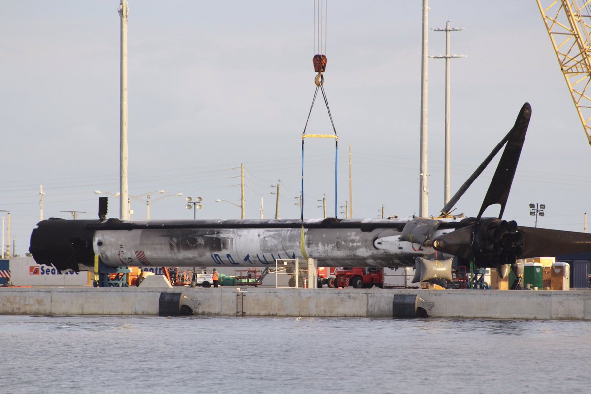 Тем временем на Земле, водоплавающую 1-ю ступень подняли из воды...