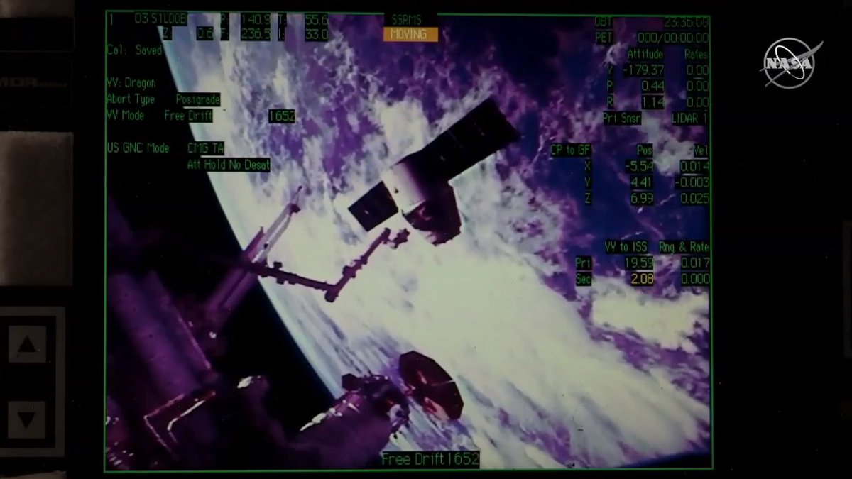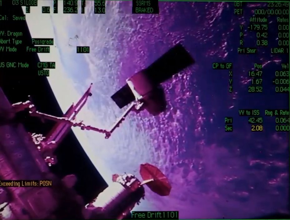 Отстыковка от МКС была завершена в 02:35 в понедельник по московскому времени. По команде из Центра управления полетами в Хьюстоне (штат Техас), 17-метровая автоматическая "рука-манипулятор" Canadarm-2 захватила Dragon в районе 23:00 мск в воскресенье и произвела его отвод от стыковочного узла американского сегмента МКС Harmony. После завершения операции "грузовик" был отправлен в самостоятельный полет по орбите.