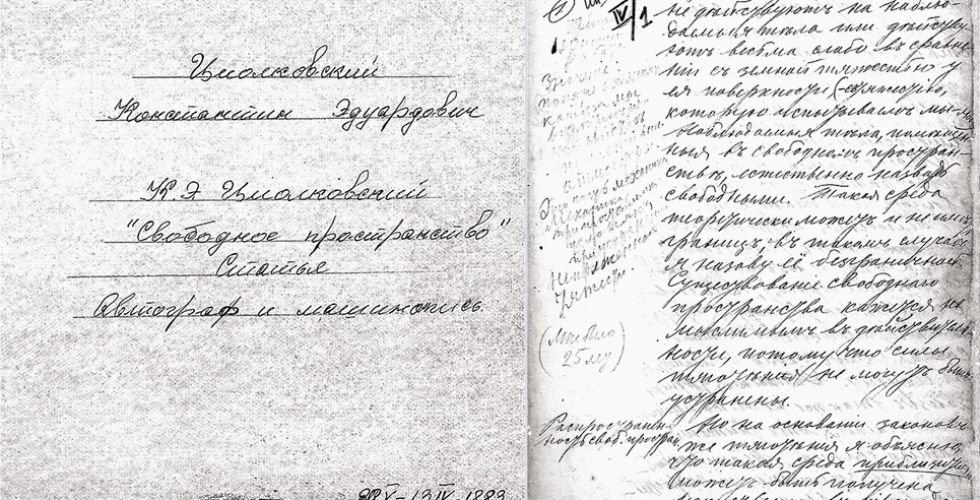 Итак, из всего богатого наследия Циолковского главный конструктор выделил две статьи, которые можно назвать фундаментальными. Первая — «Свободное пространство» — написана весной 1883 года и впервые опубликована, к сожалению, только в 1954 году.
