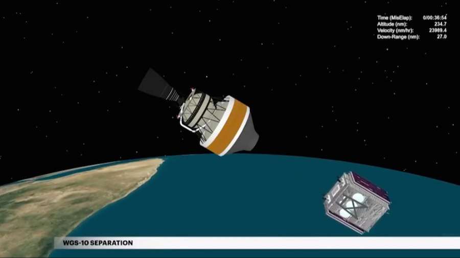 The Boeing-built WGS 10 satellite separated from the Delta 4's upper stage at T+plus 36 minutes, 50 seconds, extending the company's streak of successful missions to 133 since its formation in 2006.