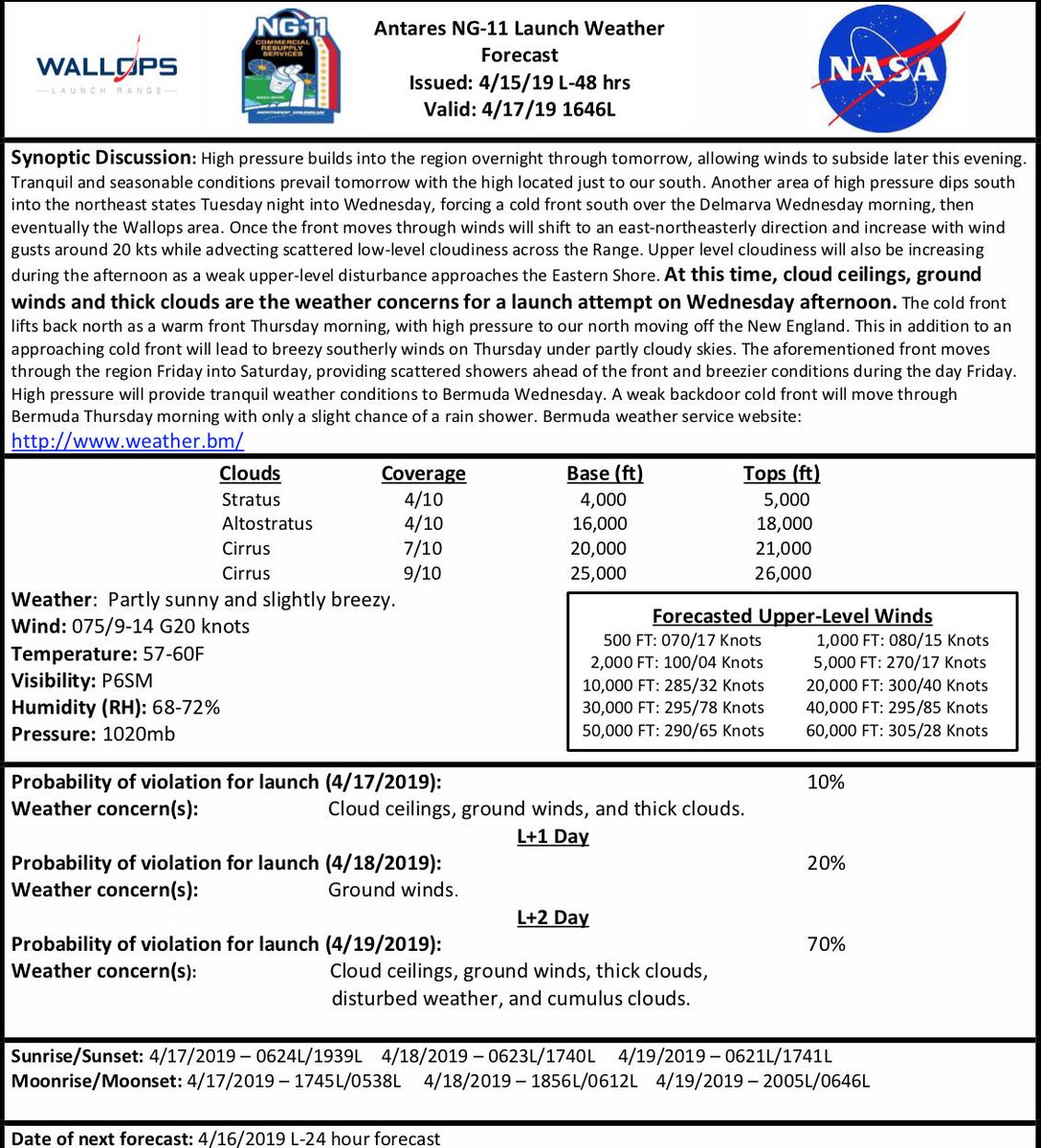 https://blogs.nasa.gov/northropgrumman/2019/04/15/latest-weather-forecast-for-april-17-antares-launch-90-favorable/