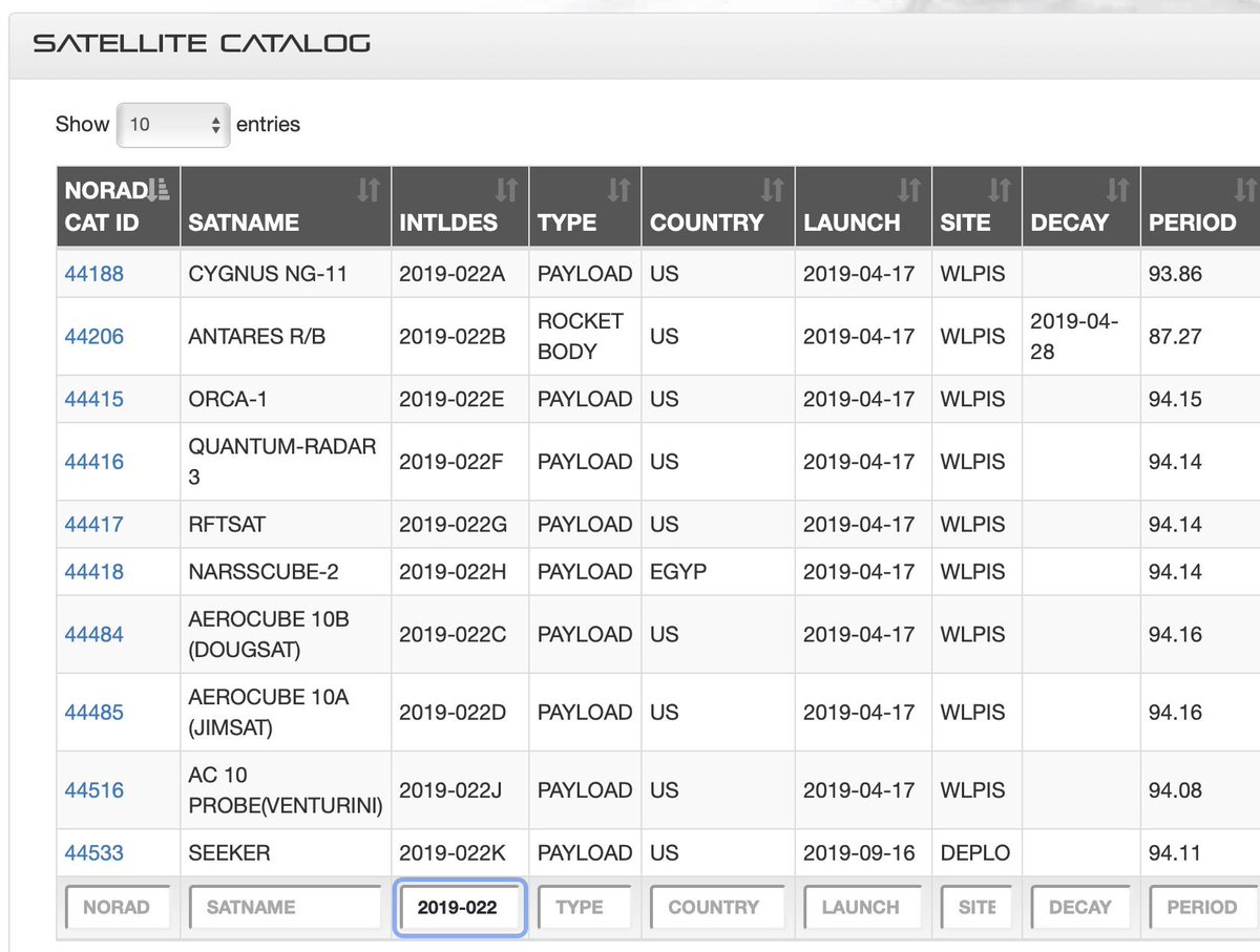 The Antares rocket stage from the NG-11 launch reentered over the Pacific at 1330 UTC Apr 28. Still no word on SASSI-2 and the ThinSats, which may also have reentered by now