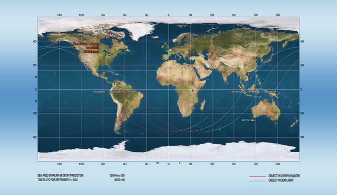 Obj. 44253 STARLINK-39 decay prediction: September 11, 2020 UTC 02h04mn ± 12h.