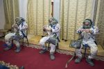 Russian cosmonauts Andrei Babkin and Nikolai Tikhonov participated in spacewalk training with NASA astronaut Chris Cassidy. Tikhonov is training to use NASA's Extravehicular Mobility Unit for possible spacewalks outside the station. Babkin is training as a robotic arm operator. Credit: Chris Cassidy via Instagram