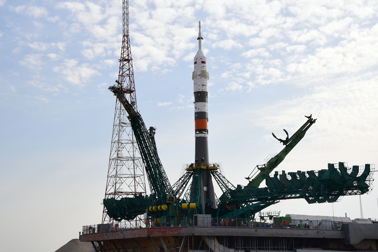 После установки ракеты в вертикальное положение расчеты предприятий Госкорпорации «Роскосмос» приступили к работам по графику первого стартового дня. Сегодня проводятся автономные испытания систем и агрегатов пилотируемого корабля, ракеты-носителя и стартового комплекса.