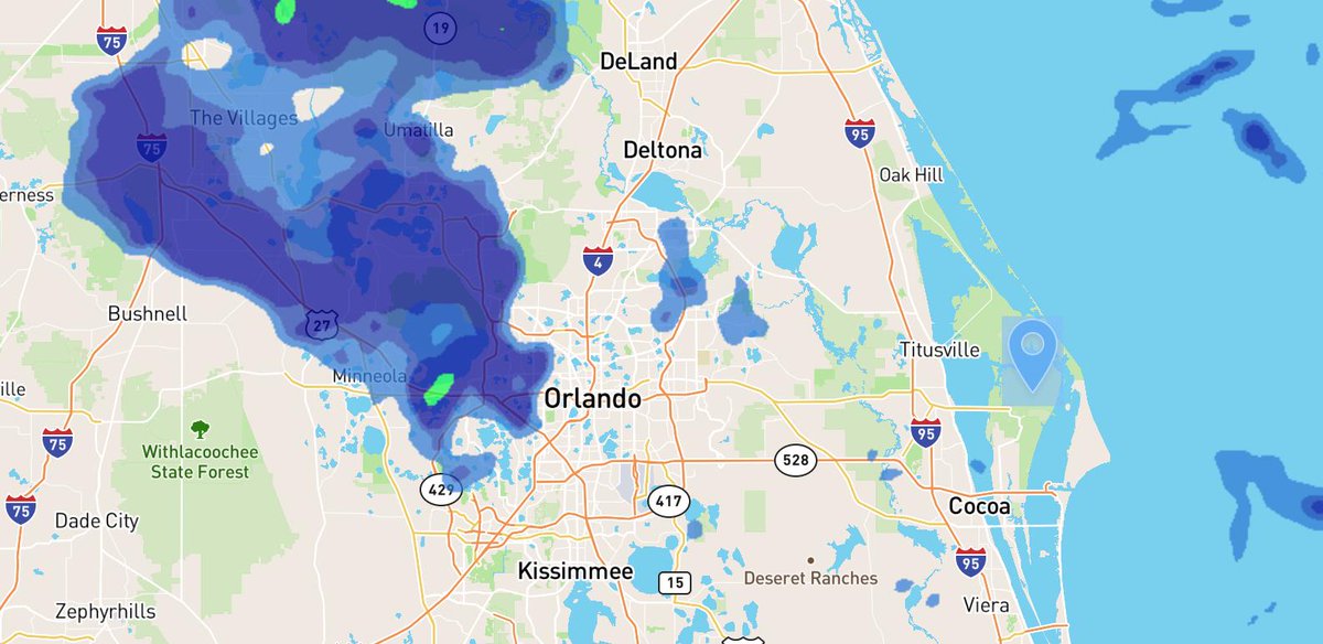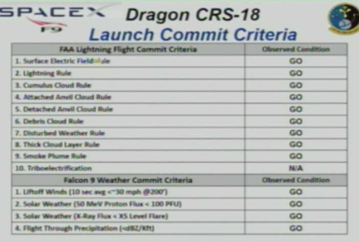 T-90mins and COUNTING.  All right, weather gods. Can you please hold this light patch of showers far enough west or far enough north at 18:01 EDT? Or dissipate it completely, please? #SpaceX #Falcon9 #Dragon #NASA #CRS18