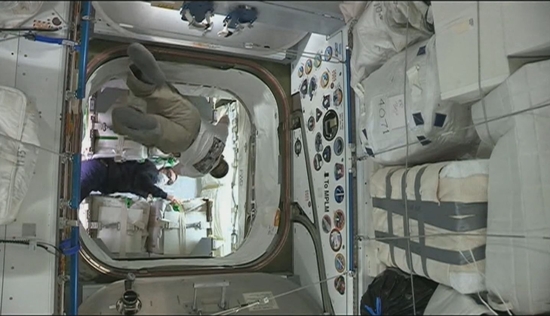 The ISS crew opened the hatch of KOUNOTORI8 at 4:10 a.m., September 29 and entered the Pressurized Logistics Carrier (PLC) at 4:14 a.m., September 29.
