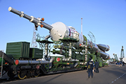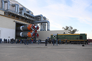 Сегодня утром ракета космического назначения (РКН) «Союз-2.1а» с транспортным пилотируемым кораблем (ТПК) «Союз МС-17» вывезена из монтажно-испытательного корпуса ракеты-носителя и установлена в стартовом сооружении площадки 31 космодрома Байконур.