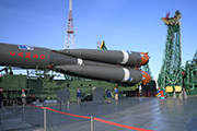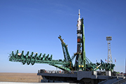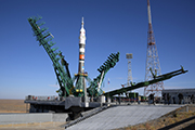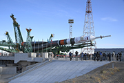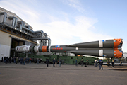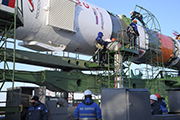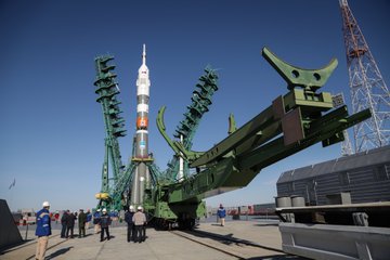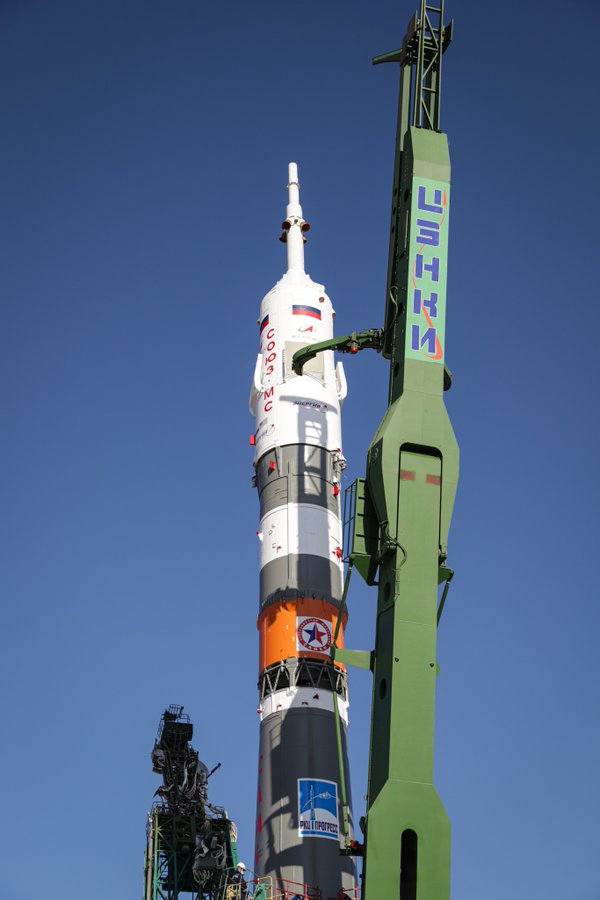 ЦитироватьРакета-носитель с пилотируемым кораблем «Союз МС-17» установлена на старте